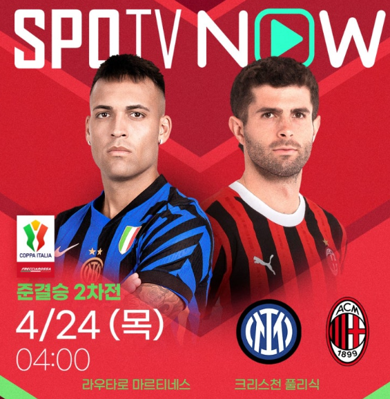 - 4/24(목) 새벽 4시: 인터밀란 vs AC밀란 (SPOTV PRIME / NOW)